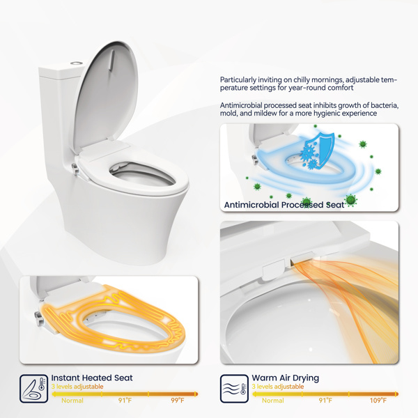 Electric Cushion Toilet Seat, Warm Water with Air Dryer, Heated Seat with Sensor and Slow Closing Cover, Strong and Weak Massage Cleaning, Night Light, Remote Control[Unable to ship on weekends]