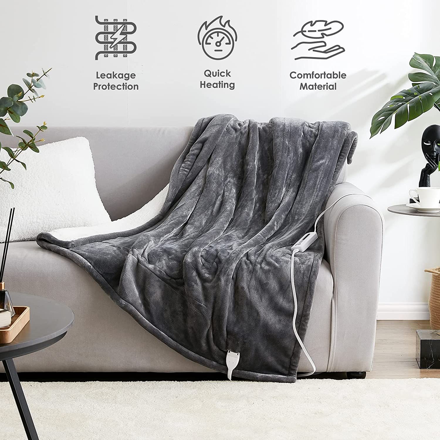 Electric heating wire adopts multi-layer coil structure; which can prevent short circuit and overheating; effectively avoiding safety hazards. Electric Throw will let you and your family spend a warm and comfortable autumn and winter.