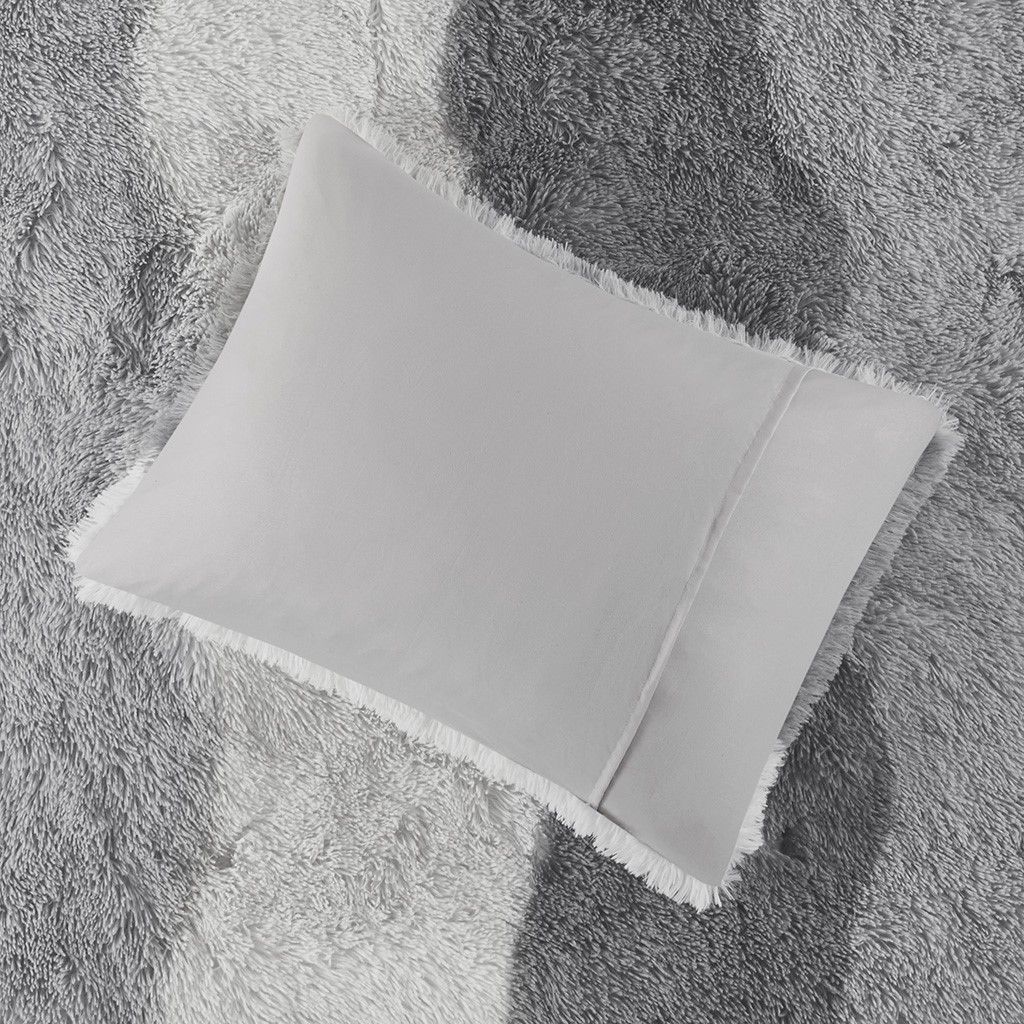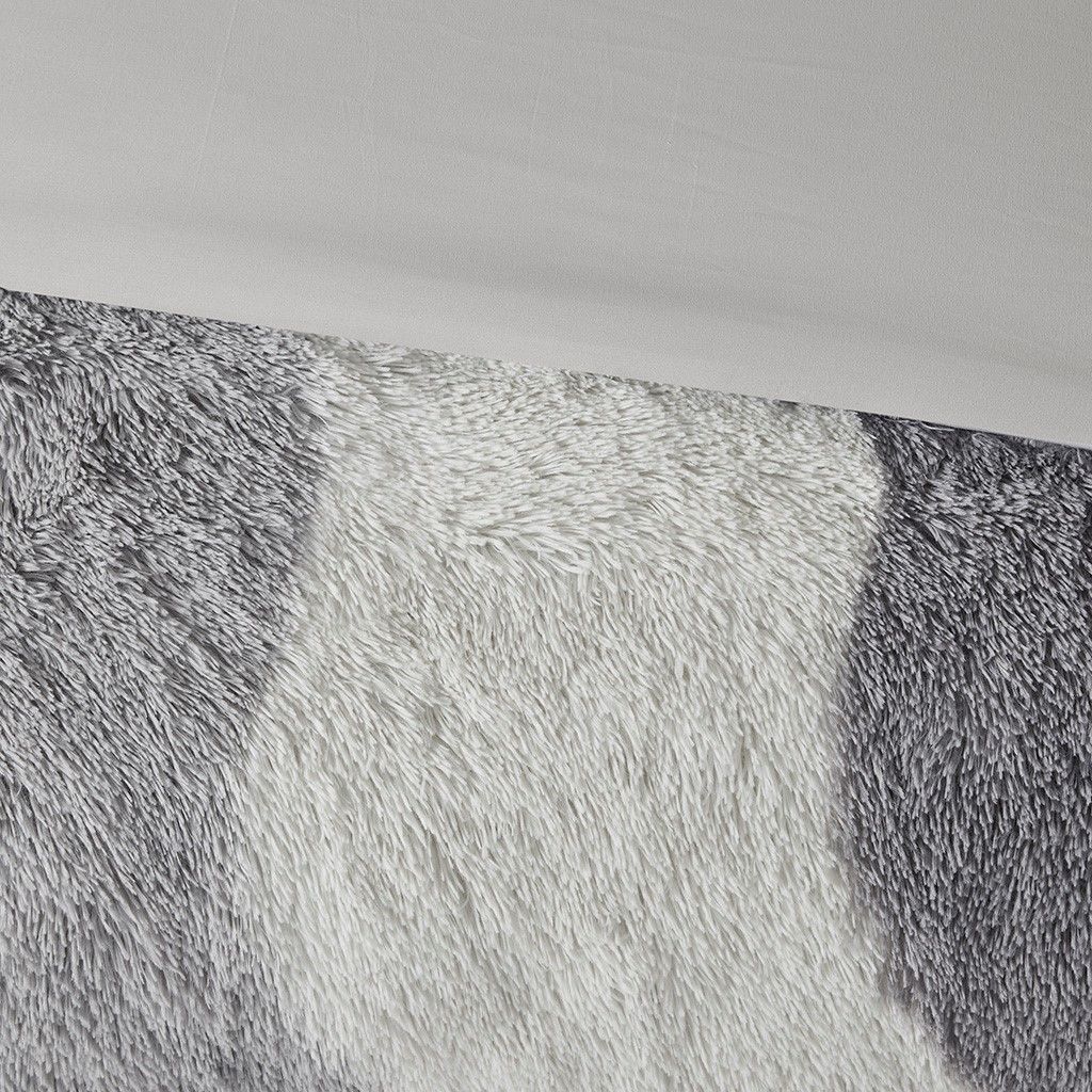 DescriptionThe Cassie shaggy faux fur comforter set showcases a unique, tonal wave striped pattern for an ombre look, and reverses to a soft grey color. This cozy comforter adds a fun and modern update to your bedroom, while coordinating shams (1 in Twin/Twin XL) complete the bedding set. The hypoallergenic polyester comforter filling contains no allergens and is treated to be dustproof. Sham set will vary in ombre colors. This machine washable comforter set is also OEKO-TEX certified, featuring an antimicrobial treatment on the reverse, which keeps the bedding fresher longer.PRODUCT DETAILTwin/Twin XL1 Comforter: 68"W x 90"L1 Standard Sham: 20"W x 26"LMATERIALComforter/Sham: 100% polyester faux shaggy fur, 100% polyester microfiber reverse. Anti-microbial treatment on comforter backFilling: 100% polyester