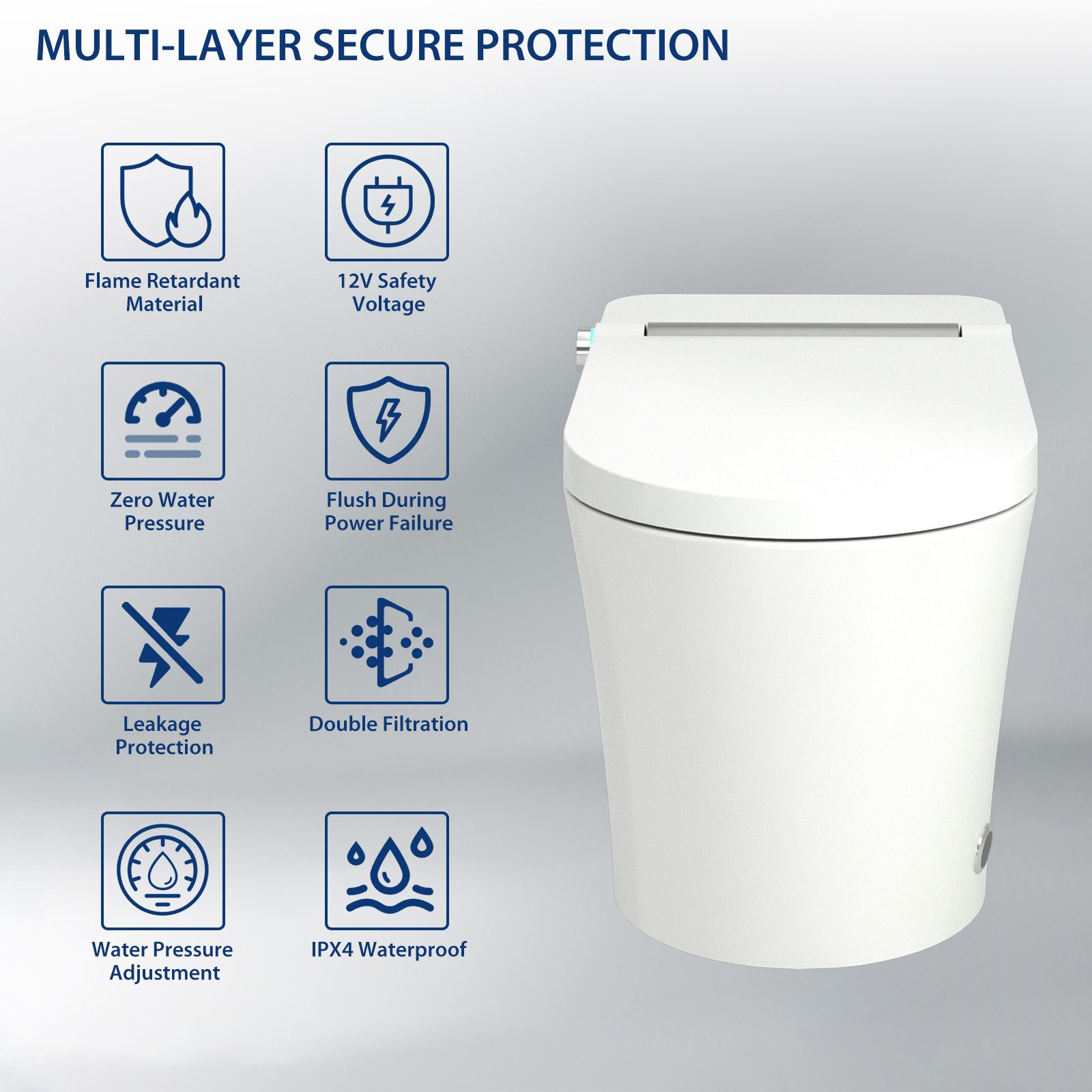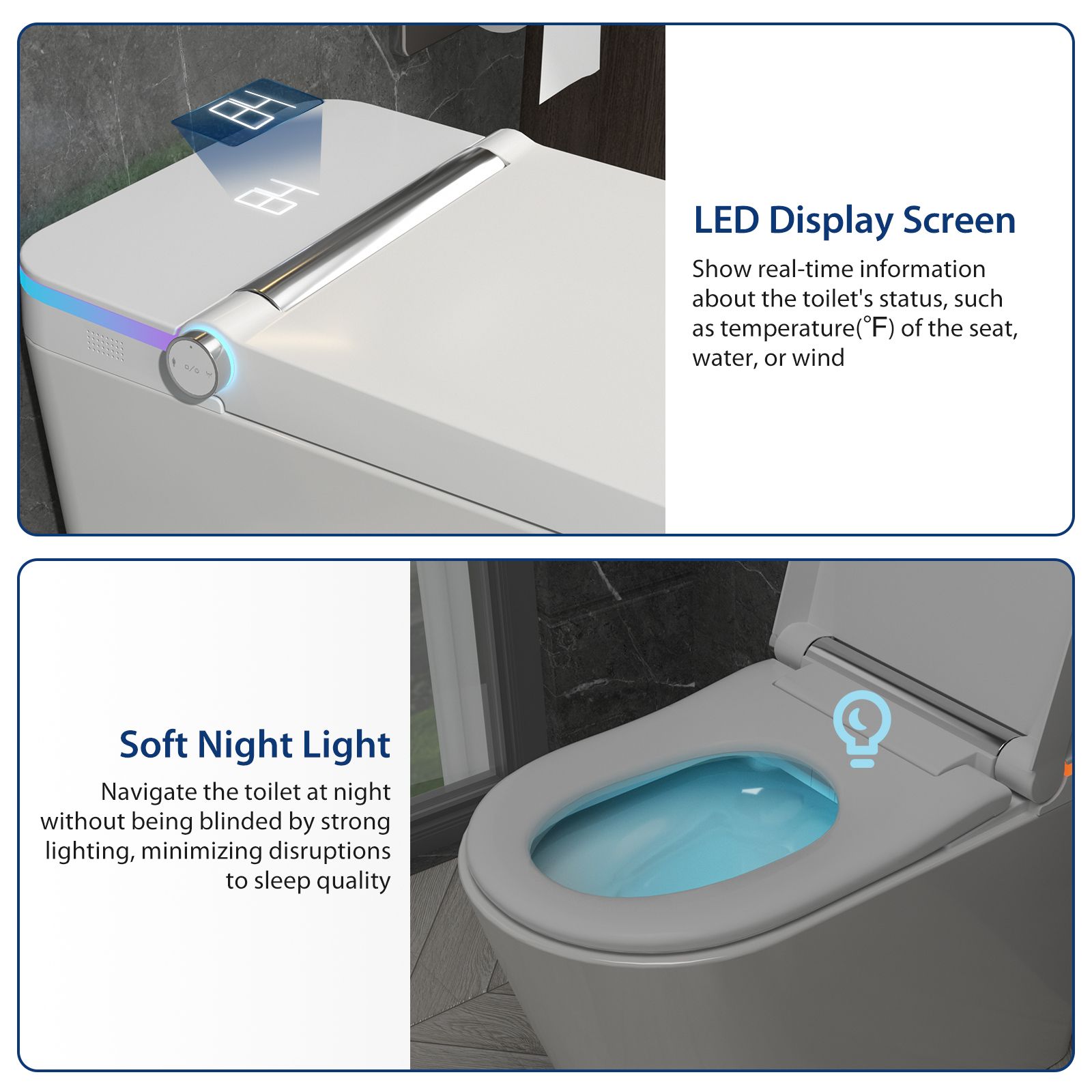 2.Our auto sensor flush smart toilet with a built-in soft glow night light which is navigating your bathroom with ease at nigh, without disrupting your sleep cycle.