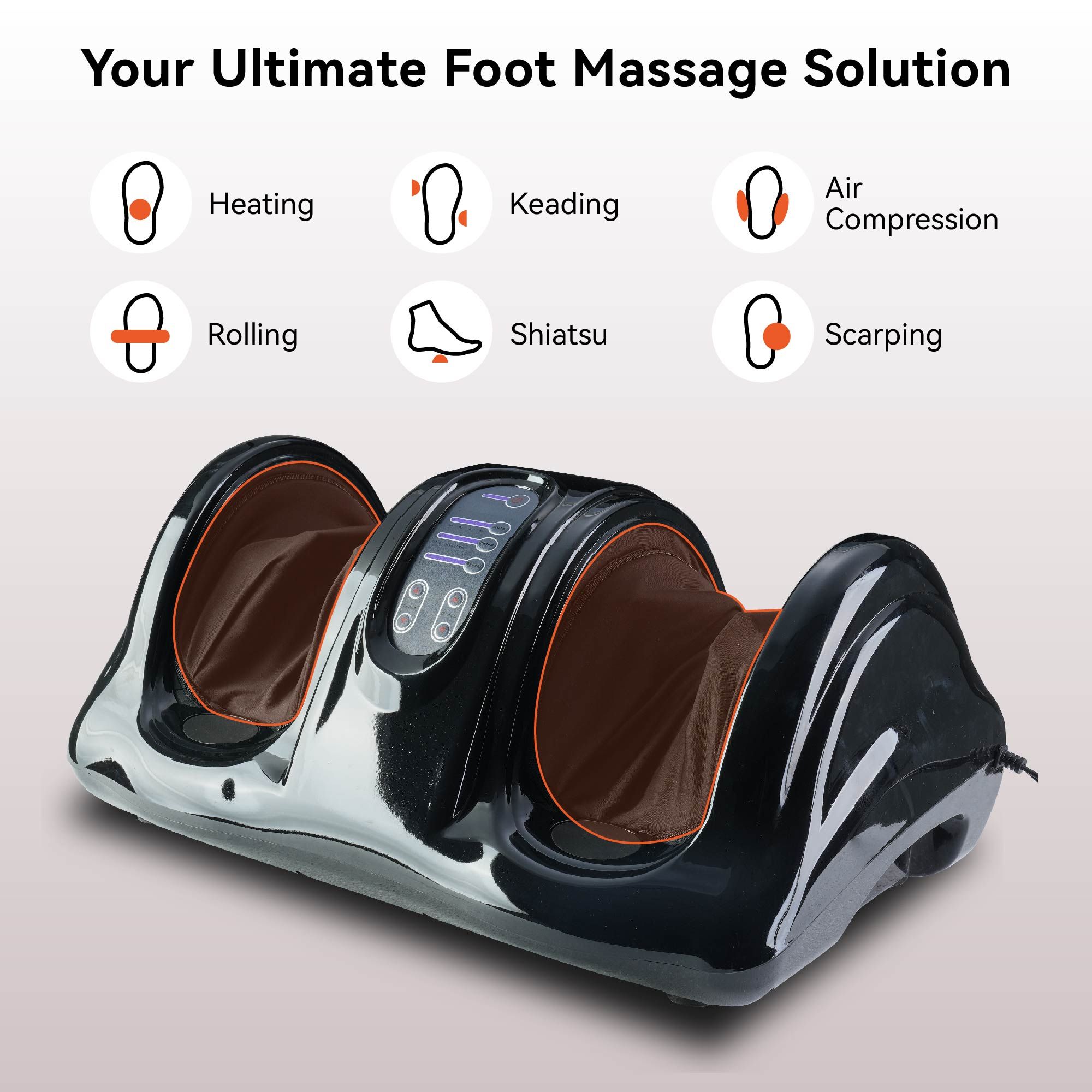 Ergonomically designed to target sensitive points on the soles of your feet, addressing reflex zones of the complex nerve system. Equipped with soft silicone simulated palms, rollers, and shiatsu nodes at the bottom, this foot massager delivers deep tissue therapy, helping alleviate plantar fasciitis and neuropathy pain, while reducing stress and fatigue.