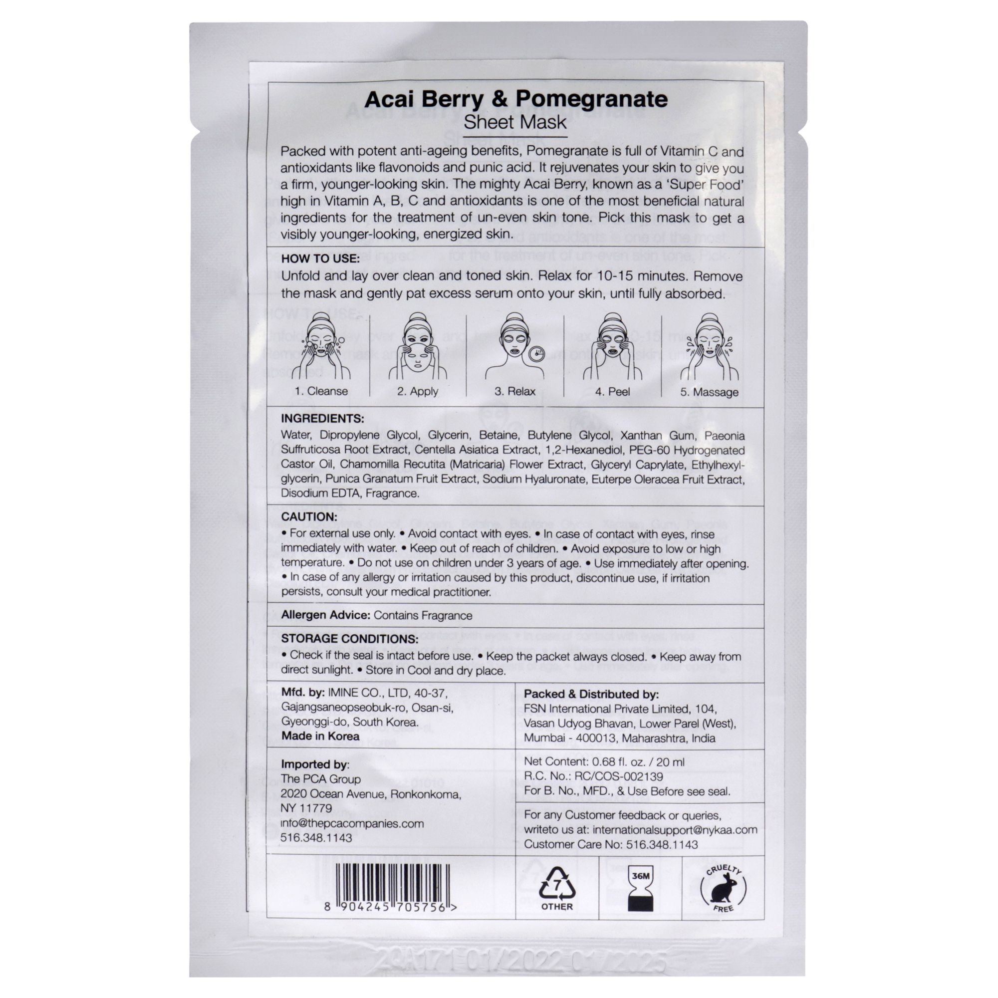 Skin Secrets Sheet Mask – Acai Berry and Pomegranate by Nykaa Naturals for Women – 1 Pc Mask